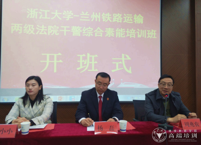 4月10日,兰州铁路运输两级法院第一期干警综合素能提升培训班在浙江大学华家池校区开班。兰州铁路运输中级法院党组书记、院长杨磊,浙江大学继续教育学院副院长(兼)、纪委书记,全国干部教育培训浙江大学基地副主任周兆农出席开班式并作动员讲话。兰州铁路运输两级法院73名干警学员参加了本次学习。