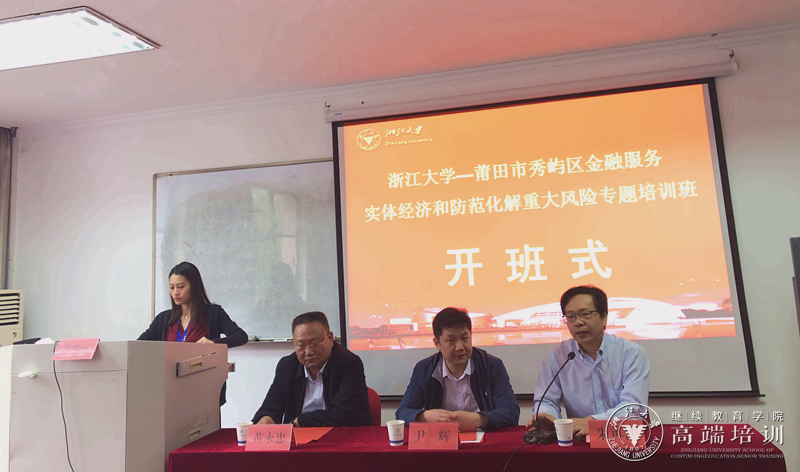 5月6日上午,莆田市秀屿区金融服务实体经济和防范化解重大风险专题培训班在浙江大学华家池校区顺利开班。莆田市秀屿区区委常委、区政府党组副书记尹辉,莆田市秀屿区人大常委会副主任黄永忠出席了开班式,49位培训学员参加了本次培训学习。