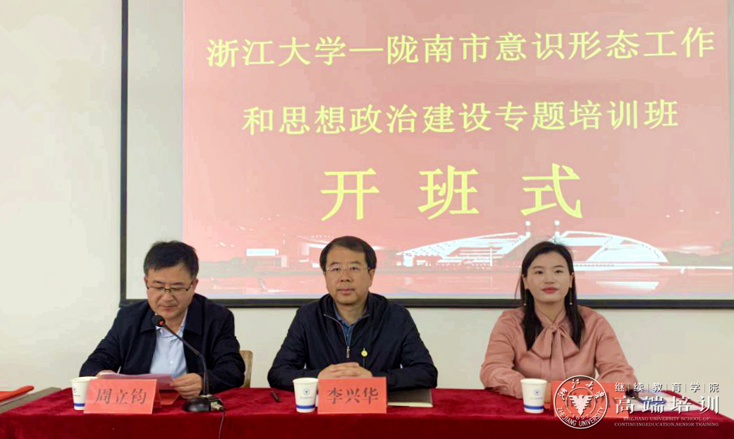 5月20日,陇南市意识形态工作和思想政治建设专题培训班在浙江大学华家池校区顺利开班。开班仪式由陇南市委常委、宣传部长李兴华,陇南市委宣传部副部长周立钧出席。49位来自陇南市各县宣传部门的负责人,陇南市意识形态工作联席会议有关成员单位分管负责人,市直宣传思想文化系统领导干部及业务骨干作为学员参加了本次培训。