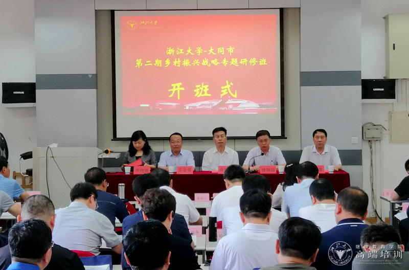 5月27日,大同市第二期乡村振兴战略专题培训班在浙江大学玉泉校区顺利举行开班式。大同市委组织部副部长、市非公经济组织和社会组织工委书记薛利云,大同市脱贫攻坚指挥部党建组组长张志强,大同市委组织部干部教育科科长张波,浙江大学继续教育学院院长、党委副书记,全国干部教育培训浙江大学基地副主任楼锡锦出席了开幕式,共69位学员参加本次培训学习。