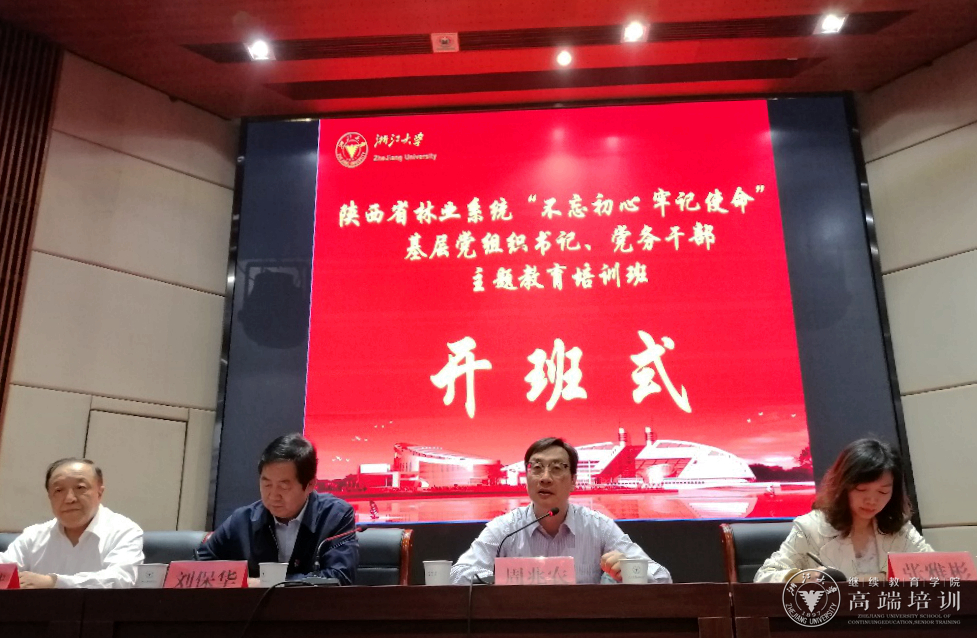 6月1日,陕西省林业系统“不忘初心,牢记使命”基层党组织书记、党务干部主题教育培训班在浙江大学华家池校区开班。陕西省林业局党组成员、副局长刘保华、陕西省林业局直属机关党委专职副书记唐周斌和浙江大学继续教育学院副院长兼纪委书记、全国干部教育培训浙江大学基地副主任周兆农出席开班式,陕西省林业系统60余人参加本次培训。