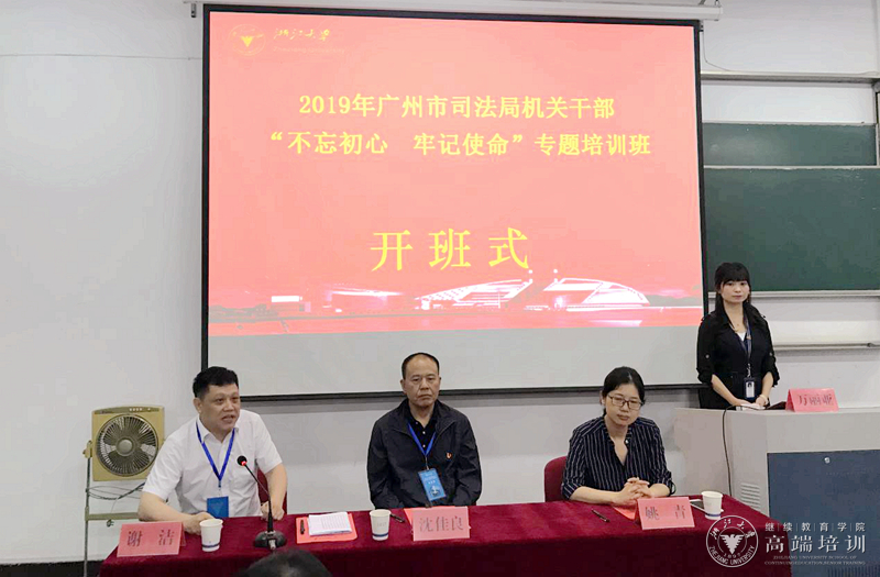 6月21日上午,受广州市司法局委托,由浙江大学继续教育学院承办的2019年广州市司法局机关干部“不忘初心 牢记使命”专题培训班在西溪校区顺利开班。广州市司法局副调研员沈佳良,广州市司法局副调研员谢洁,浙江大学继续教育学院副院长姚青出席了开班式。来自广州司法机关的70名学员参加了本次培训学习。