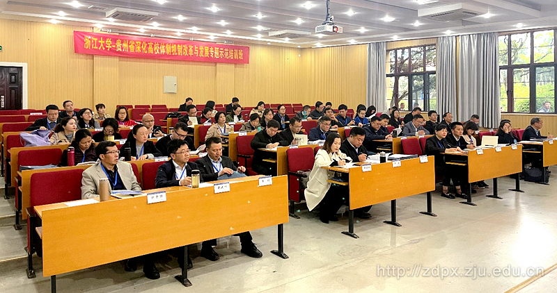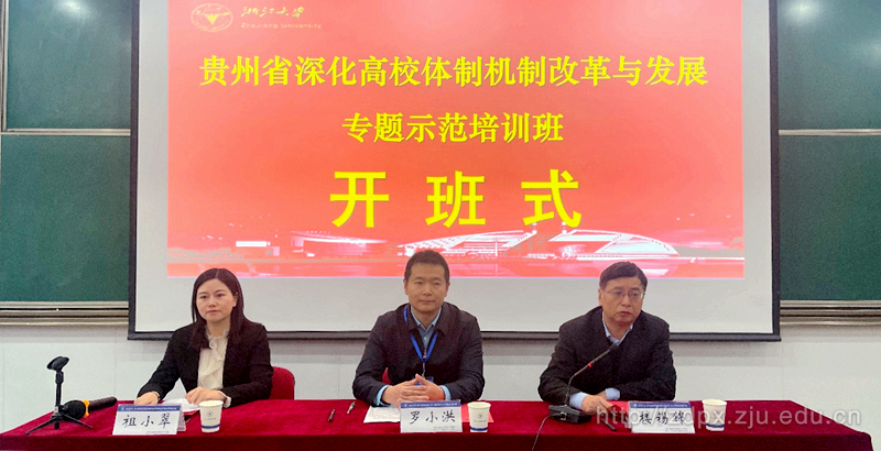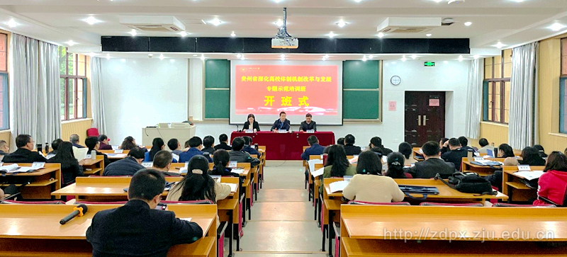 4月14日上午,由贵州省委组织部、贵州省委教育工委联合主办,浙江大学继续教育学院承办的贵州省深化高校体制机制改革与发展专题示范培训班在浙江大学华家池校区顺利开班。贵州省委组织部干部四处副处长罗小洪,全国干部教育培训浙江大学基地副主任、浙江大学继续教育学院院长、党委副书记楼锡锦出席开班式并讲话。