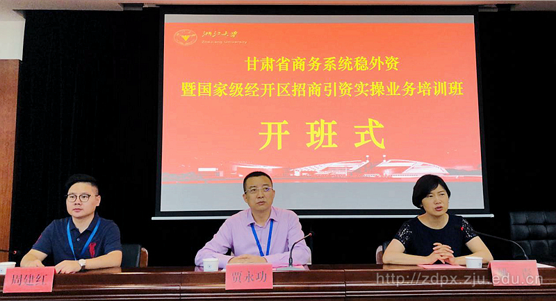 9月23日上午,甘肃省商务系统稳外资暨国家级经开区招商引资实操业务培训班在浙江大学华家池校区开班。甘肃省商务厅外资处处长贾永功,浙江大学继续教育学院副院长姚青出席开班式。