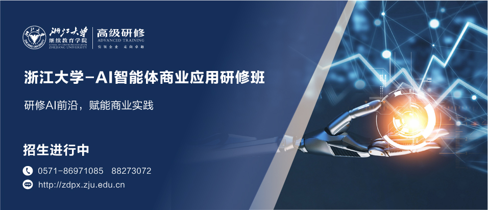 浙江大学继续教育学院依托浙江大学人工智能学科建设的雄厚科研力量,推出“AI智能体商业应用研修班”。聚焦企业需求,结合国家战略与产业实践,帮助企业管理者深度理解AI技术趋势,掌握赋能创新的核心方法,并通过实地教学,探索AI在业务场景中的落地应用,助力企业在数字化浪潮中抢占先机,实现高质量发展。