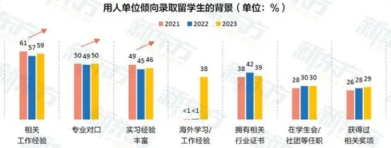 用人单位倾向录取留学生的背景情况。图/《2023中国留学白皮书》大学版