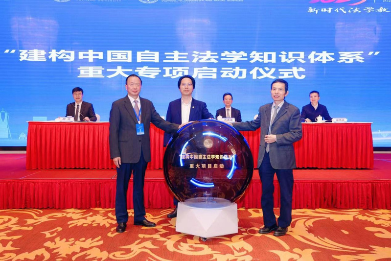 黄先海表示,浙江大学深入贯彻习近平总书记关于哲学社会科学工作的重要论述和重要指示精神,立项教育部首批“建构中国自主法学知识体系”重大专项;不断完善法学学科专业体系,加快发展数字法学等新兴学科,开创涉外法治人才培养新模式;创新发展法学理论研究体系,紧紧围绕新时代全面依法治国实践,加强扎根中国文化、立足中国国情、解决中国问题的法学理论研究。期待本届论坛能够围绕“法学教育和法学理论”这一主题,为建设法治中国做出新的更大贡献。 活动中,浙江大学涉外法治研究与人才培养基地揭牌成立,浙江大学“建构中国自主法学知识体系”重大专项同时启动。