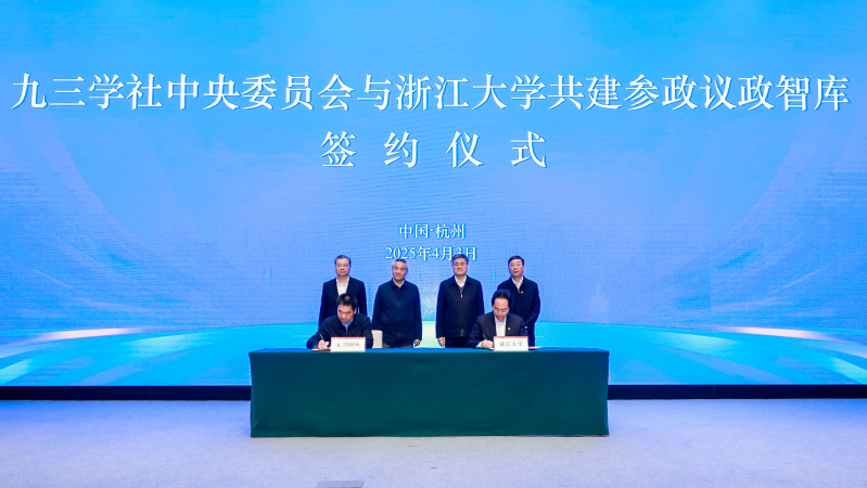 4月3日,九三学社中央委员会与浙江大学共建参政议政智库签约仪式暨专题调研会在紫金港校区求是大讲堂举行。此次签约标志着双方的合作进入新阶段,未来将通过特色鲜明、协作协同、多学科交叉的智库运行机制,持续开展前瞻性、战略性、针对性的研究,为党和国家重大决策需求提供更有力的智力支持,更好地服务“国之大者”。