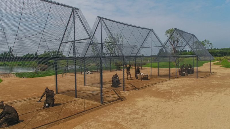 为了破解这样的困局,严建强在“最小程度干预,最大程度阐释”的展示理念下,采取了一系列创新举措。例如,运用透明屏增强现实(AR)的方式搭建莫角山宫殿区观察站,让观众在登上宫殿区之前先对莫角山的堆筑技术和功能分区形成总体的认识。对于曾经出土玉琮王和玉钺王的反山王族墓地,采用了保护式复原的方式,再现了考古遗迹发现时的原真性。为了让普通观众有更多直观的认识,还创造性地运用钢网雕塑的方式来再现良渚人在古城作坊区的生产与生活。由于没有成熟的先例可参考,策划设计团队在两年多的时间,与浙江省文物考古研究所的考古学家们反复讨论,通过原型与小样不断进行行程中评估,把艰深的考古学信息转化为可视化项目。