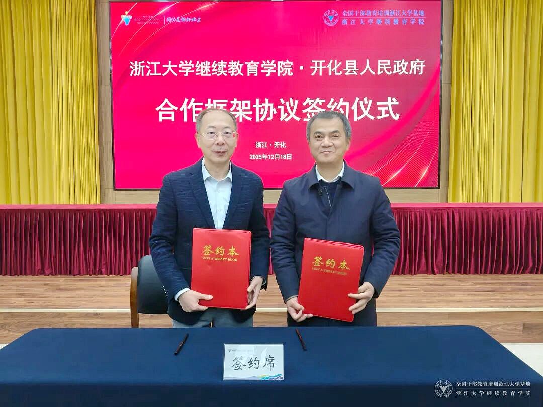 浙江大学继续教育学院与开化县人民政府正式签订合作框架协议