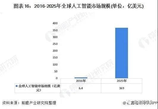 目前就市场判断看,2016年全球人工智能市场规模6.4亿美元,权威机构预测其到2025年市场规模将达到369亿美元,年均复合增速达57%,2015年国内人工智能市场为12亿元,到2020市场规模将达到91亿元,年复合增长率约50%。