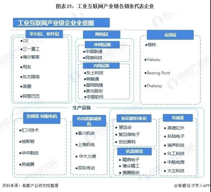 行业中游为互联网平台,从架构上可以分为边缘层、平台层和应用层。边缘层是工业互联网应用的基础,主要负责工业大数据的采集;平台层主要解决的是数据存储和云计算,涉及到的设备如服务器、存储器等。应用层主要是各种场景应用型方案,如工业APP等。