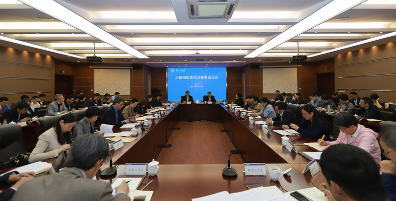 4月23日,浙江大学八届四次教代会提案送达会在紫金港校区召开。校党委书记任少波出席会议并讲话,校党委副书记朱世强主持会议。与会领导将提案逐一送达主办单位负责人。