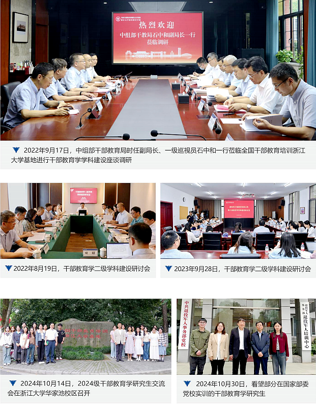 2021年,浙江大学被中组部、教育部确定为“干部教育学”二级学科建设的3家试点高校之一,2022年率先启动干部教育学硕士研究生招生。学校高度重视干部教育学学科建设工作,依托马克思主义学院和全国干部教育培训浙江大学基地,整合马克思主义理论、教育学、公共管理学、管理学、心理学、法学等学科,加强院系协同,有效推进学科建设工作,目前已连续三年招收干部教育学硕士研究生。全国干部教育培训浙江大学基地成为干部教育学研究生培养的教学实践基地。