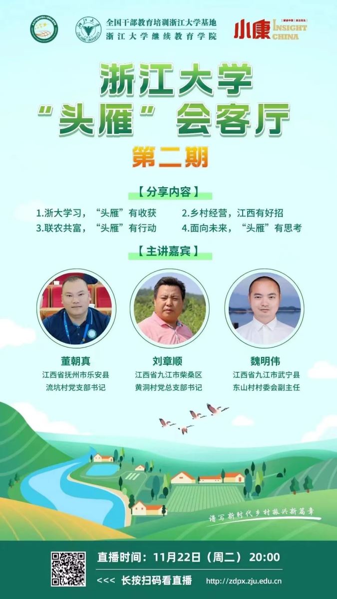 11月22日(周二)20:00,浙江大学“头雁”会客厅(第二期)将在线上举办。