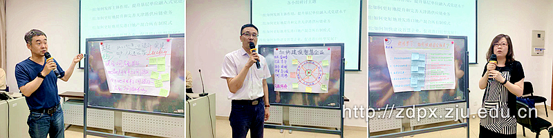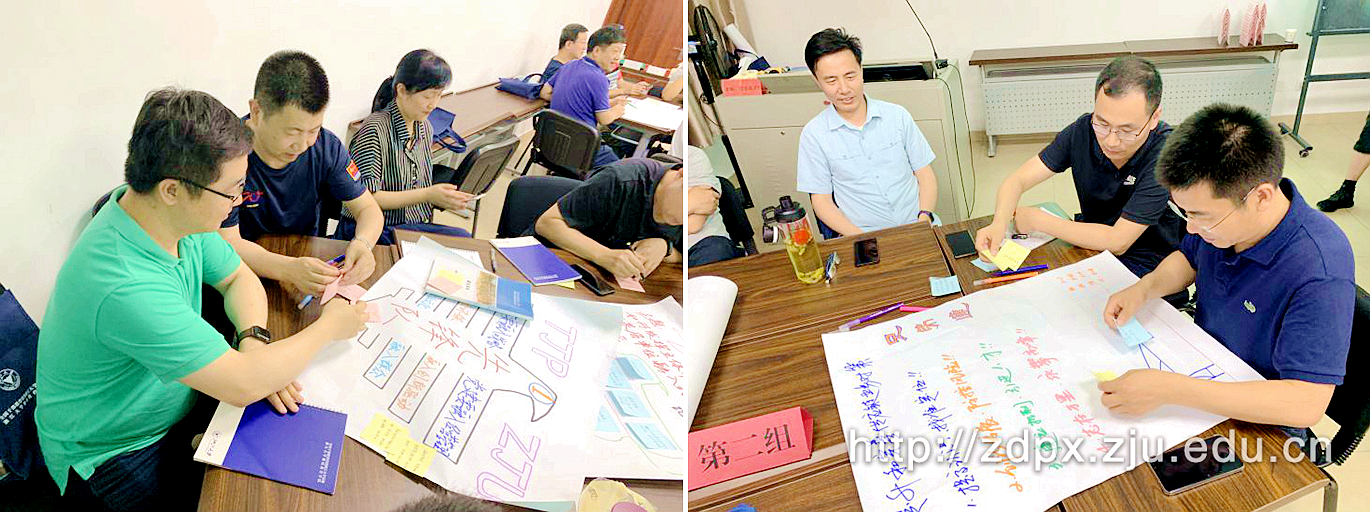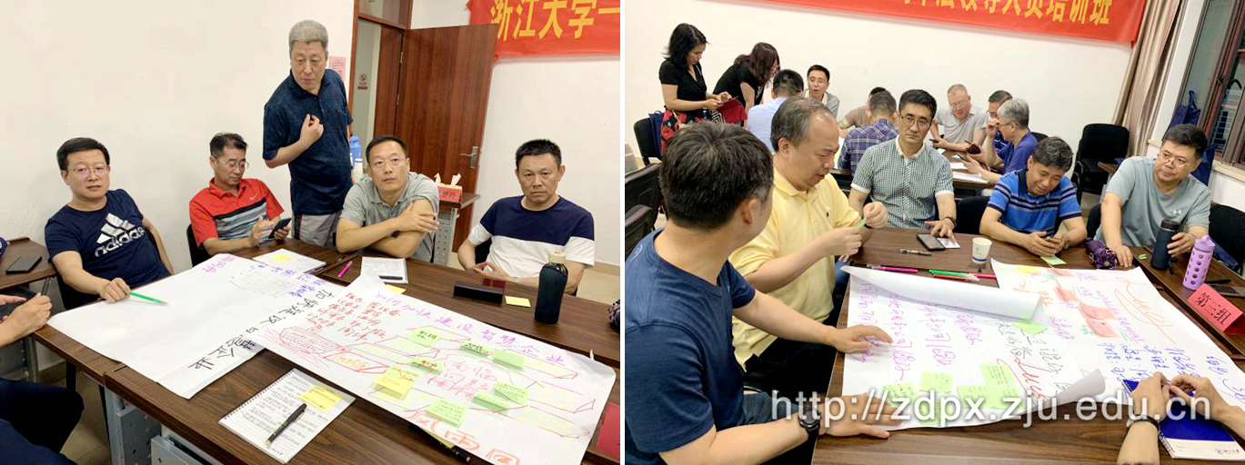 浙江大学继续教育学院通过对小组共创法的不断创新,逐渐形成了多个环节:分组分群、聚焦主题、角色分配、头脑风暴、命名决议、组合意见、决策过滤、成果分享等,在大家都没有明确想法的情况下,建立一种可以达成共识的愿景;在大家都不知道如何做的时候,建立一种可执行的具体行动计划,达到一个实际的团体共识,找到最核心的问题,旨在进一步激发了学员的参与感与责任感,增强集体荣誉感与团体合作精神。