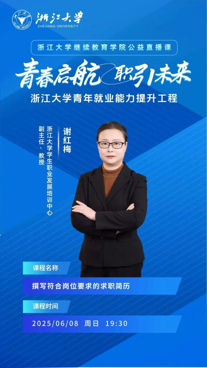 浙大谢红梅教授在线开讲“撰写符合岗位要求的求职简历”